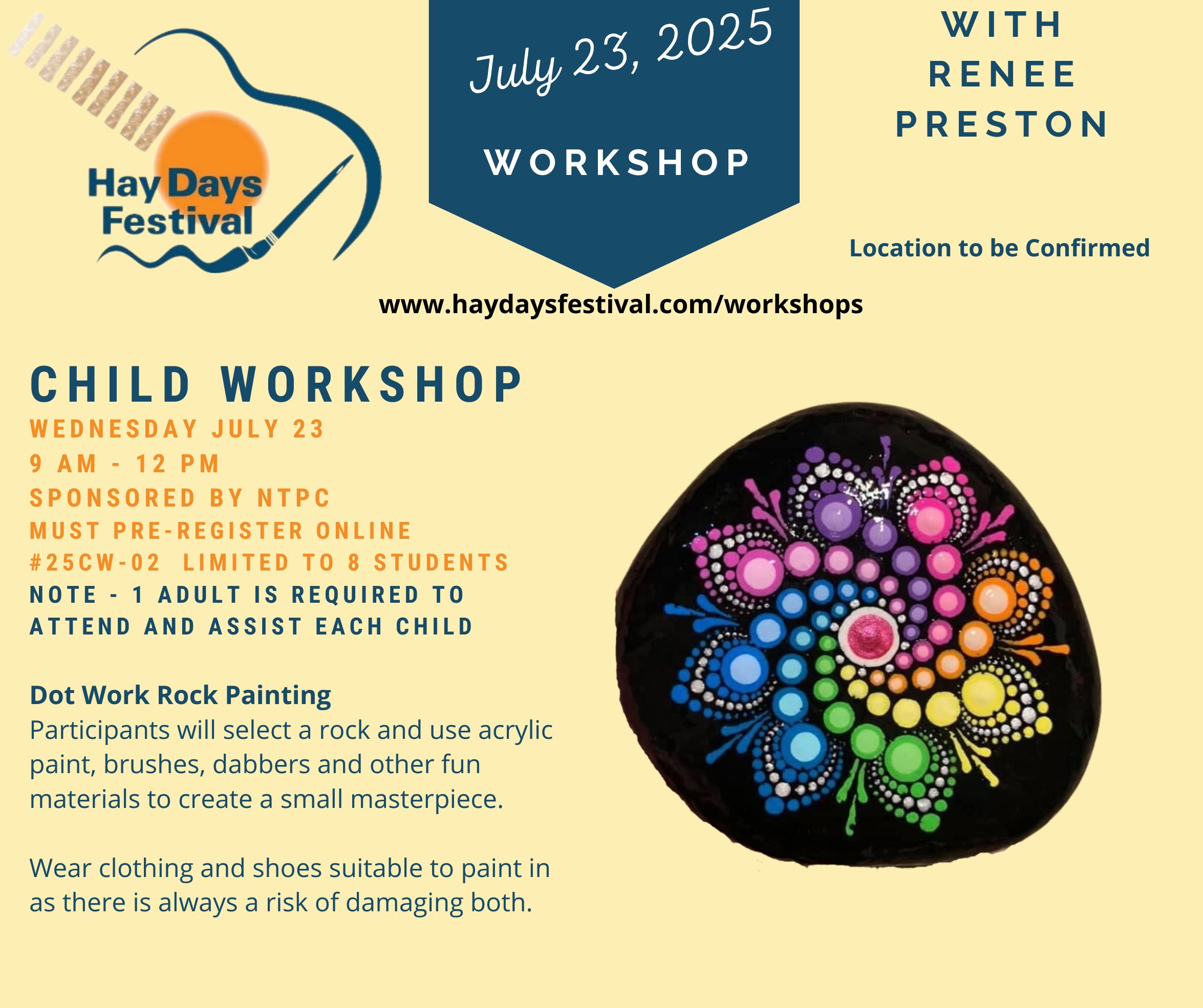 Child Workshop (6 to 12 years) – Dot Work Rock Painting NO FEE – SPONSORED BY NTPC