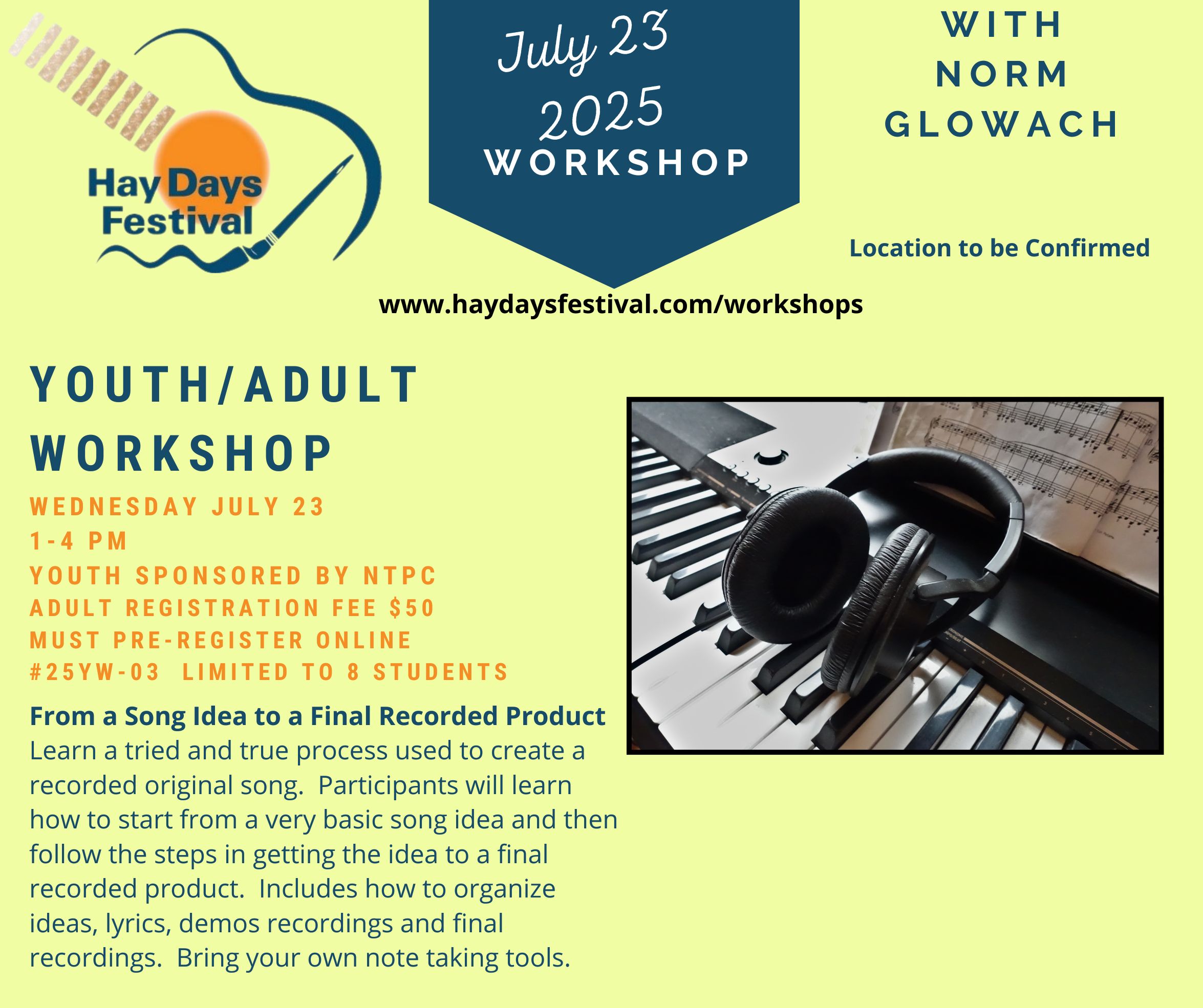 Youth/Adult Workshop (12 years up) – From a Song Idea to a Final Recorded Product